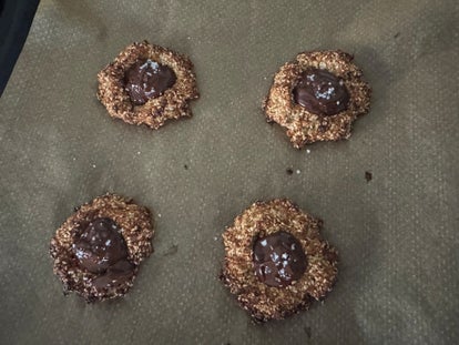 Compote, beurre de cacahuète, flocon d'avoine, cacahuète, pépite de chocolat