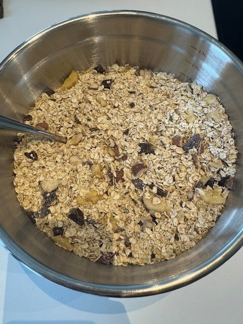 Flocons d'avoine, Amandes, Chocolat, noisettes, Airelles, Banane sechée